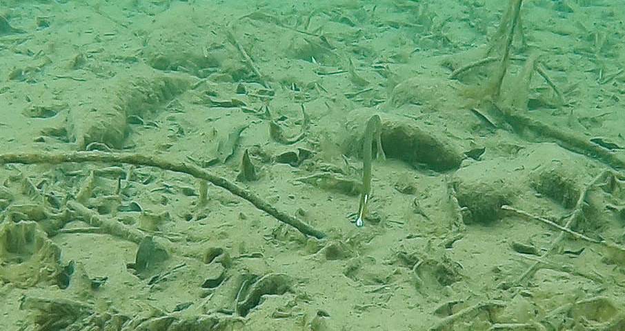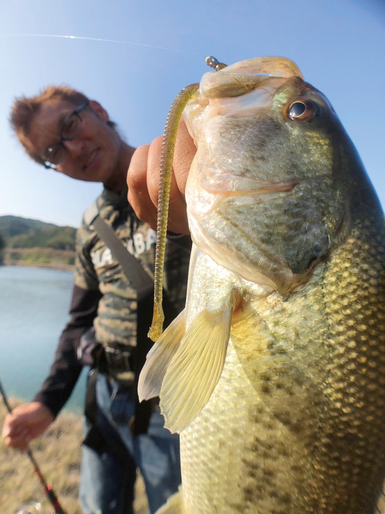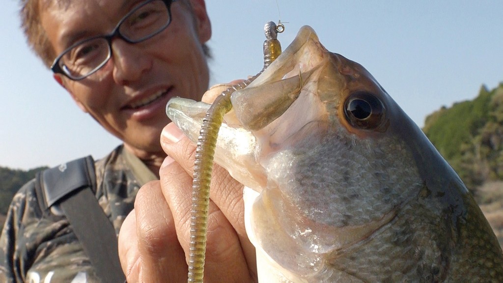 村上さんの場合は、食い渋りバスに対する一手として、現場でよくやるのが、「長くそして細いワームを使う作戦」。