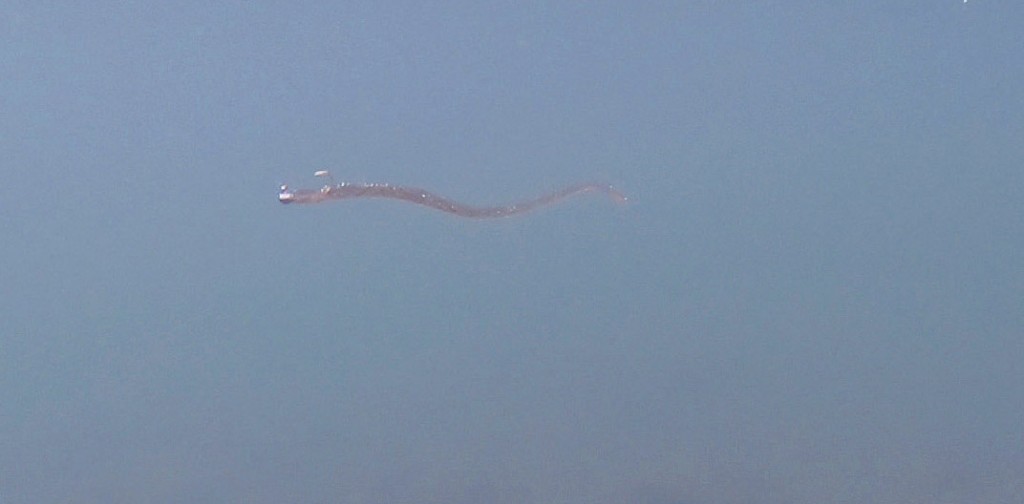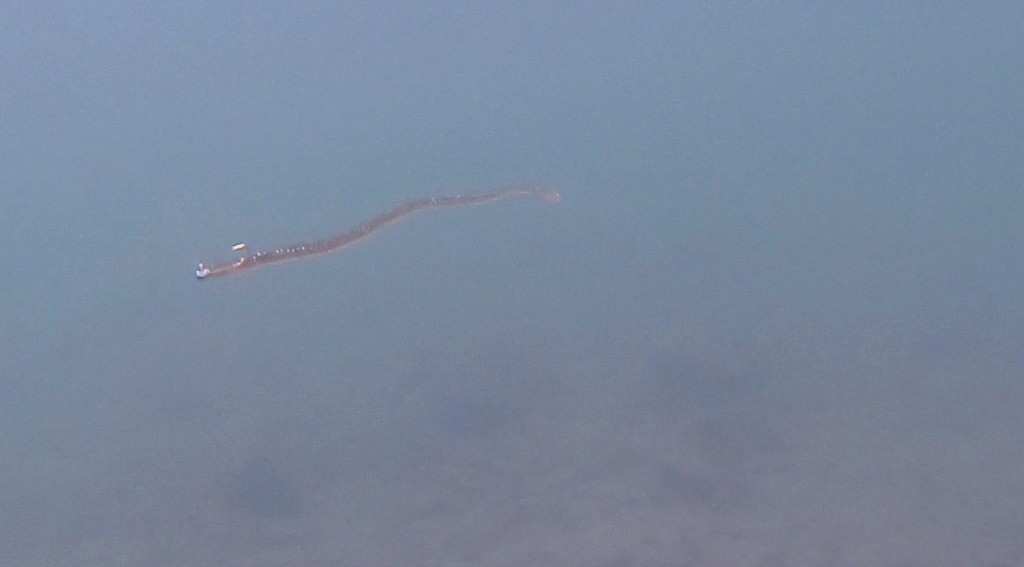 先日のロケでも食いが浅い状況の中で、通称ナガスパ(スパテラの4㌅の太さのまま6.6inchぐらいにまで長くしたモノ)の0.6gジグヘッドを投入!