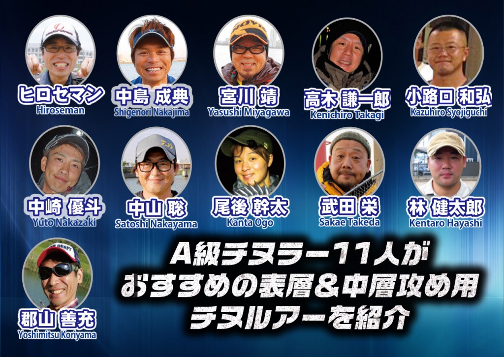 有名チヌラー11人に、チヌゲームで定番になりつつある中層&表層攻めルアーでオススメのモノを紹介していただきました
