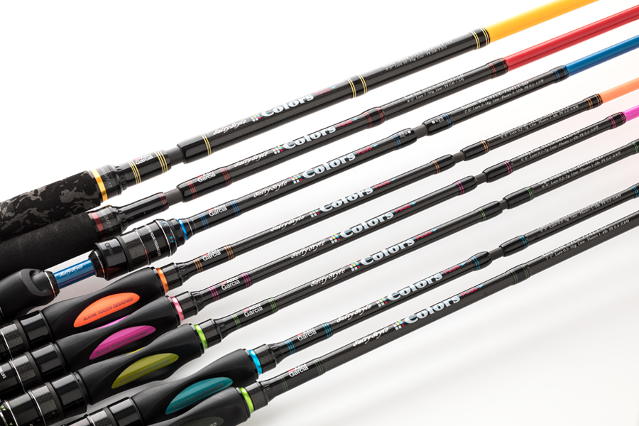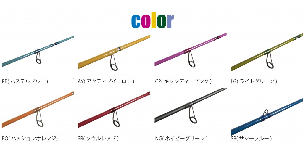 ご覧の通り、色鮮やかなカラーが特徴で、全8色14機種がラインナップされているソルトゲームロッドとなっています。