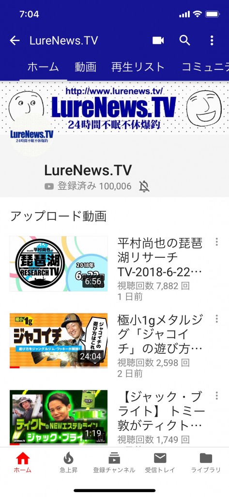 YouTubeルアーニュースTVのチャンネル登録者が10万人に!