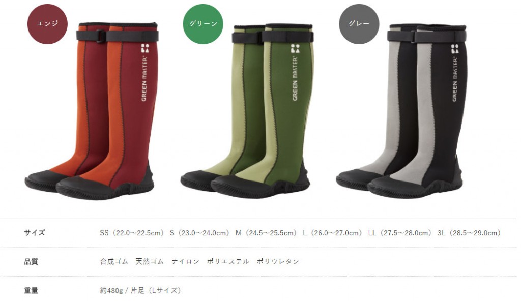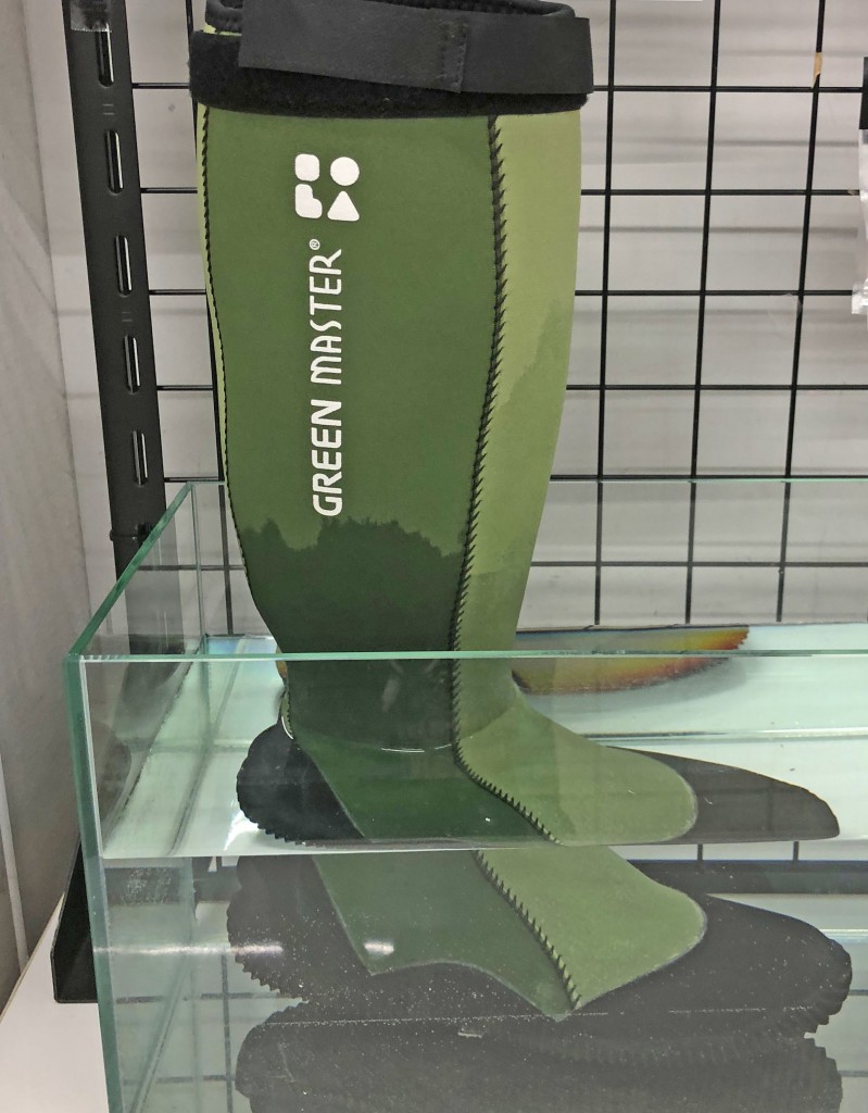 グリーンマスターはニーブーツタイプ、そして同ライトはショート丈の防水ブーツ。ネオプレーン製なのに価格は低めでデザインがオシャレなんですよねぇ。