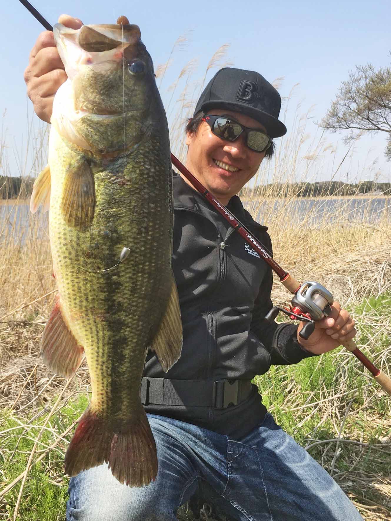 というのもこの時期の牛久沼のバスは産卵するために体力を付けようとシャローに上がってくるのですが、その時にキョーレツに意識するのが増水に伴い動きはじめるザリガニなんです! そのザリガニををかなり捕食し、プリスポーンという時期的な面を合わさり、かなりイイプロポーションになるんです。