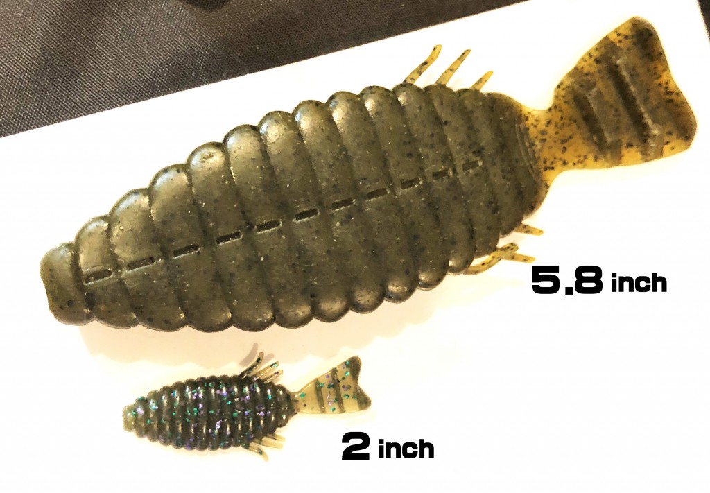 今となってはブルーギル型ワームの筆頭的な存在だけど、少し前は反則サイズといえる2inchも発表。