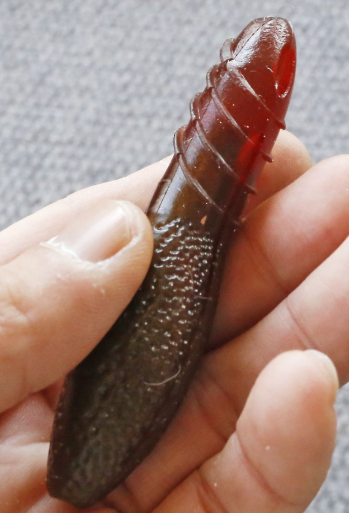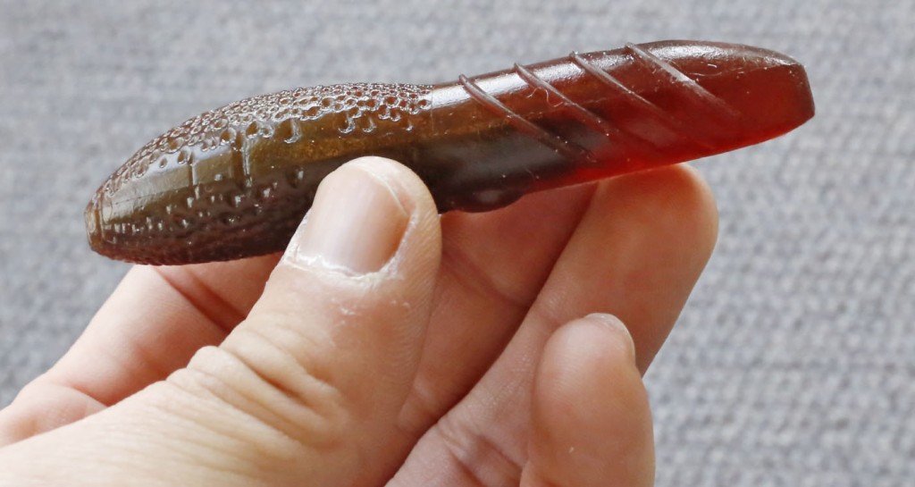 奥村さんいわく、完全に犬のう○こ…とまでいわせる形状のカタマリ系ワームが「カバースキャット(仮)」。
