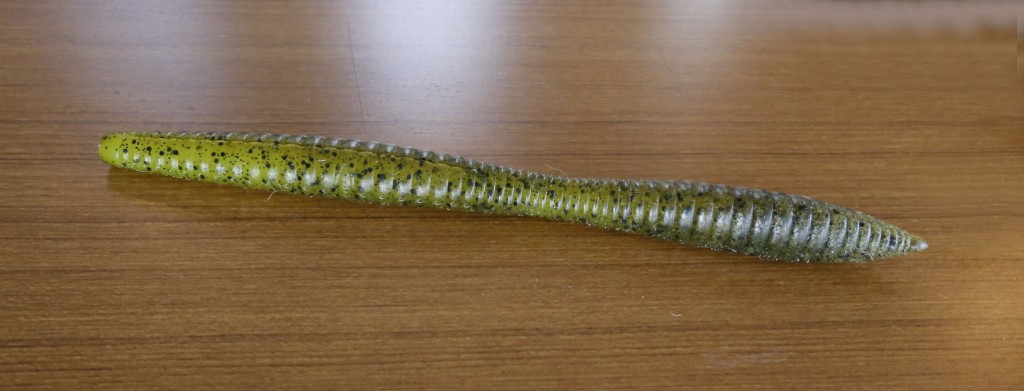 ボリューミーで高比重なボディとクビレを持つスティックベイト系で、偏平ボディとデルタ形状のテールを持つワーム。