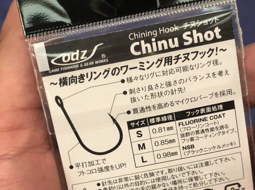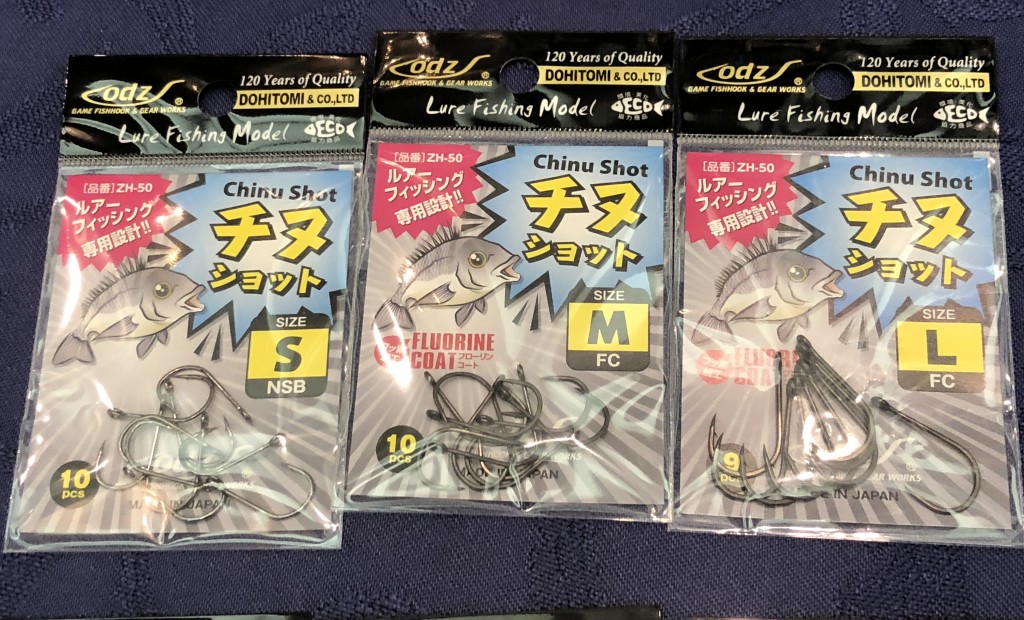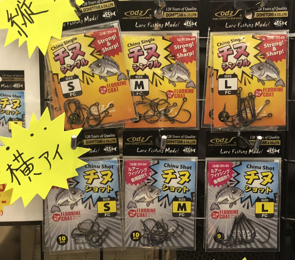 サイズはそれぞれS、M、Lの3種あるのに加えて、チヌシングルは縦アイで、チヌショットは横アイ仕様となっています!