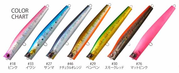 もちろんナチュラル系のダイビングペンシルは有効なシーンは多いですが、一方、もっとアピールのデカいモノやフッキング率の高いモノを求めるアングラーが少なからずいたのも事実。