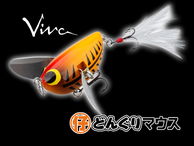 仔どんぐりマウスは全長45mm(8g)と超コンパクトなクローラーベイト。硬質アルミウィングが特徴的で、これが覚えたてのクロールのように動くと(笑)、クラッター音がしてアピール力ゲキ高。