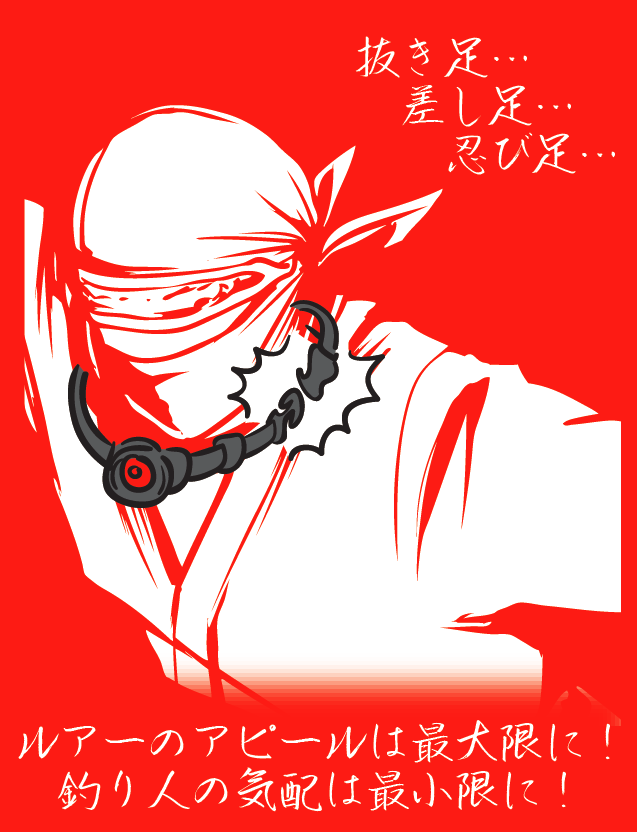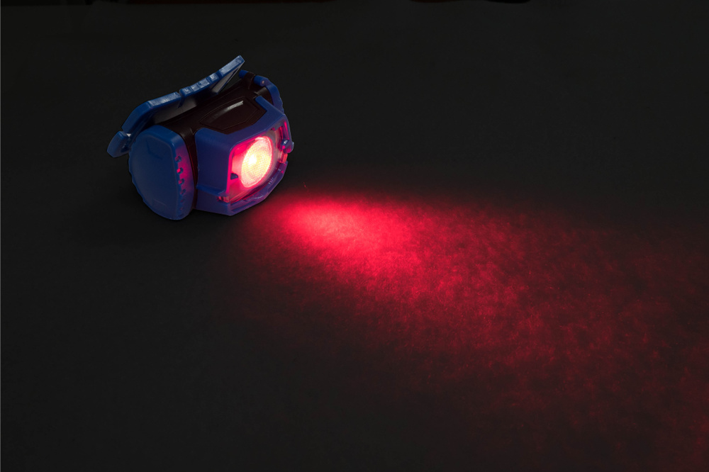 メインライトの光は赤のLED。なんでも魚から見えにくい色ということで、フィールドに与える影響は最小限に済みそうですね。まさに人の気配を消す忍者ライト。