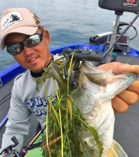 特に、縦に長いエビ藻のようなウィードは、ストレート系のワームを使用するよりも水を動かすクエイククローを使用する方がサイズにも恵まれる傾向にあります!