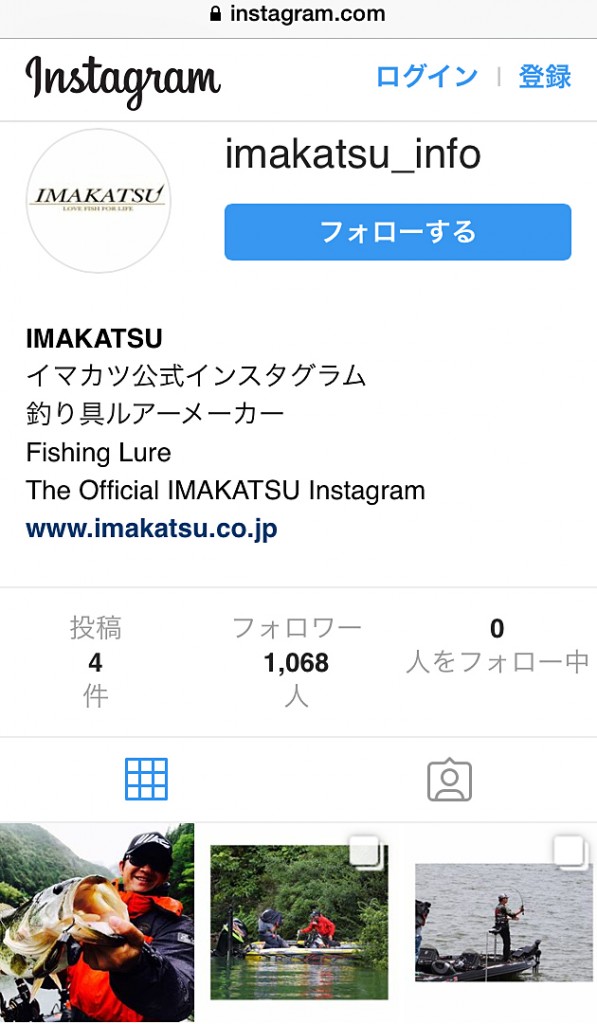 ちなみにプロフィールでは、バスフィッシングブランドである「IMAKATSU(イマカツ)」の公式インスタグラムとなってますが、実際は今江克隆のプライベート・インスタグラムとのこと。
