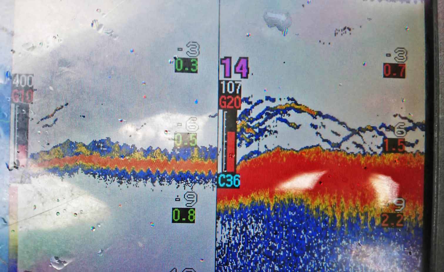フラットエリアは同じ水深の範囲が広く、ロングキャストしてもボトムまで沈 む時間がほぼ同じなので、イガジグスピンの釣りのリズムがつかみやすいです!