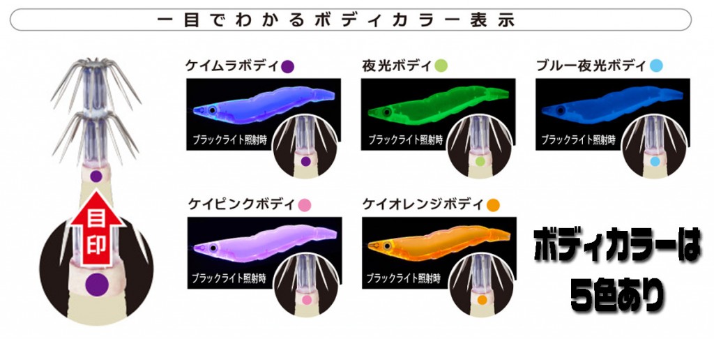 今まではブルー夜光ベースのカラーでしたが、今回は夜光ベースのボイルカラーが追加され、ブルー夜光のボイルよりもアピール度がUPし、まさにサーチにもってこいのカラーになっています。
