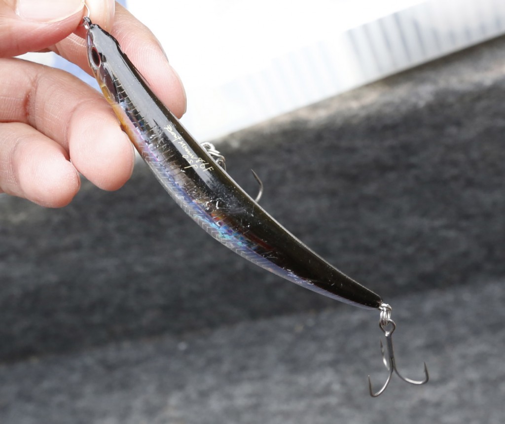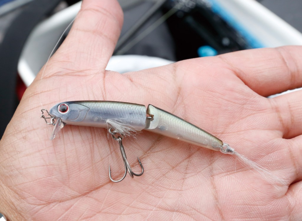 オリキンさん的にはワームでは少し弱いがプラグでは強すぎるという時にこのルアーをセレクト!細かくトゥイッチさせてもタダ巻きでも魚を寄せてくれるのがお気に入りの理由だそう。