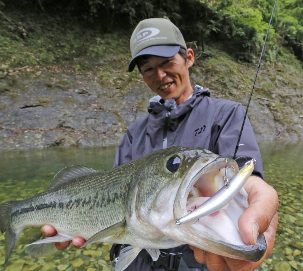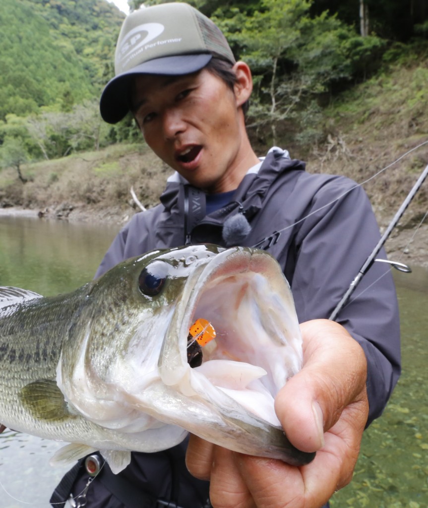 ちなみに取材時はボイル直後、魚が沈んだ状況でこのルアーで波紋を立てると再びスイッチオン。完全にベイトだと思って勢いよく食ってくるシーンを何度も見ることができました。さらにオイカワがベイトでサイズ的にもシェイプ的にもマッチしていたことが今回の最多ヒットルアーになった理由になっています。