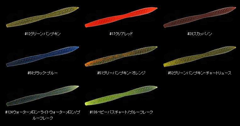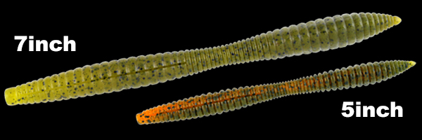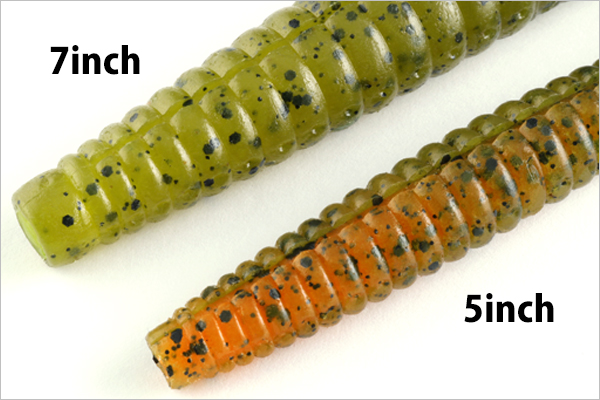 非常にボリューミーなバス用スティックワームで、クビレのあるシェイプから放たれる波動、そして跳ね返りアクションでバスを誘います。