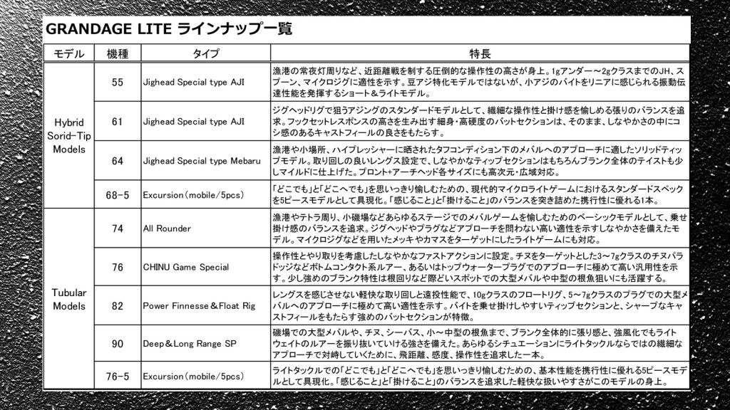このグランデージライトが加わることでますます充実のグランデージシリーズ! いろんな魚種で使ってみたいですね!