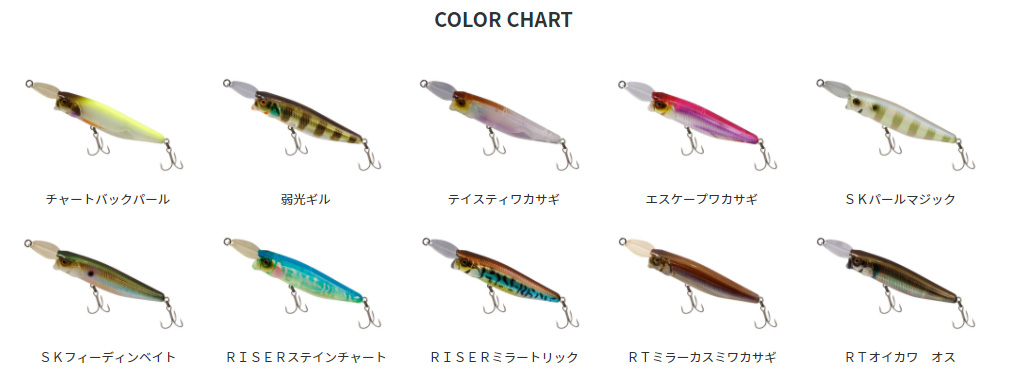 | RISERBAIT 009P | 85mm | 22g | Sinking | ST36BC #5 | ¥1,900(本体価格) |