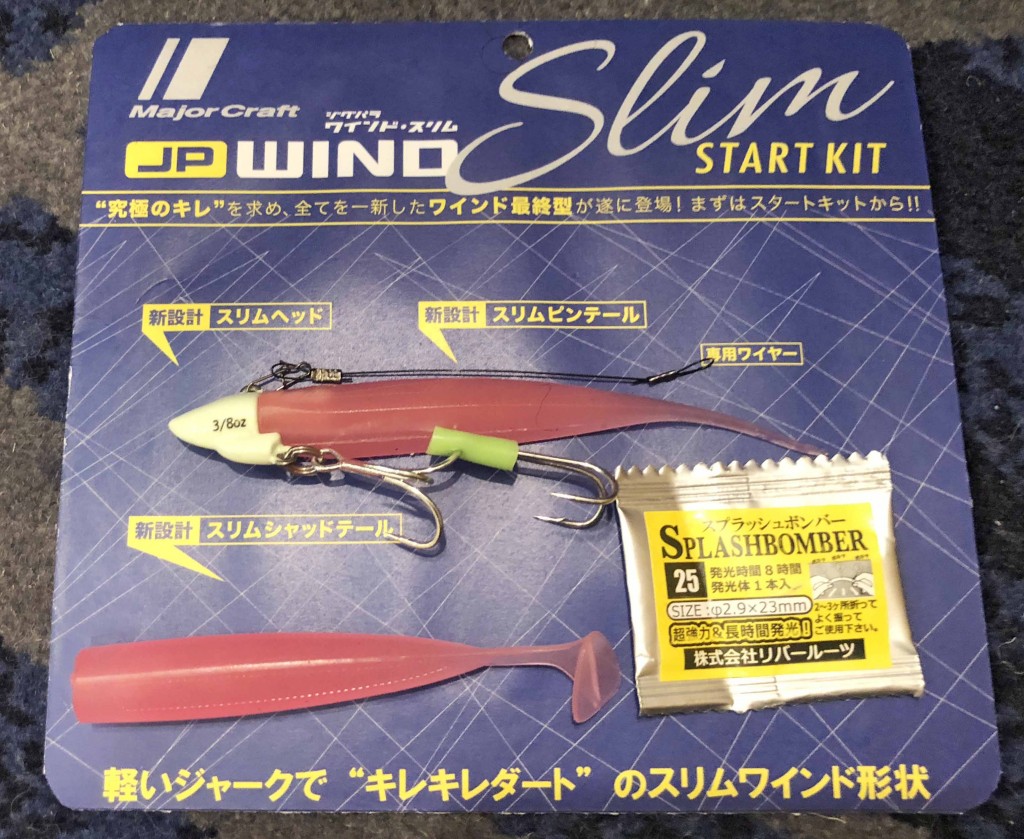セット内容はスリムヘッド、ワーム2タイプ(スリムピンテールとスリムシャッドテール)、ダブルフック、ワイヤーリーダー、発光棒。