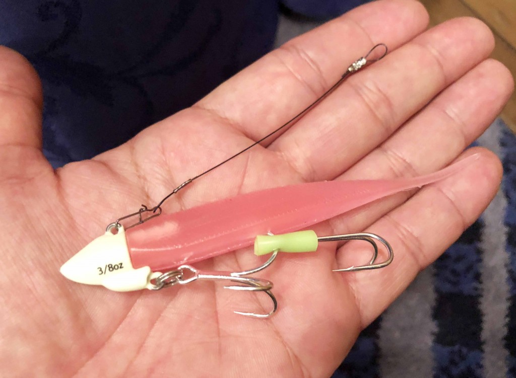 ウエイトは3/8oz、1/20z、5/8ozの3タイプ、あとワームカラーは超夜光と夜光ピンクの2種あり