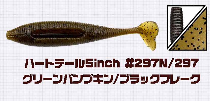 で、ハートテールのカラーですが、基本はウォーターメロンペッパーとグリーンパンプキン/ブラックフレークのどちらかを使います。