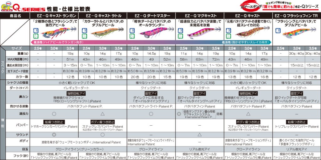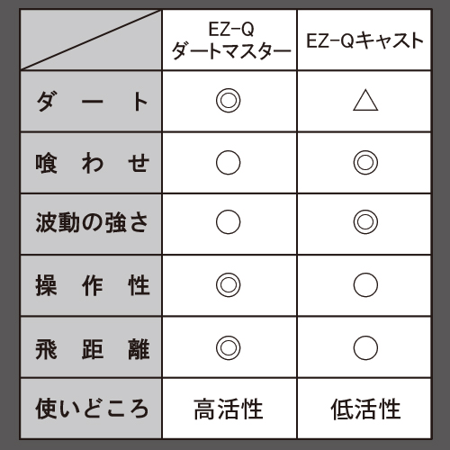 EZ-Qダートマスターは軽快シャクリで守備範囲が広いオールラウンダーに対して、EZ-Qキャストは強力な波動で抱かせる超スレイカ対応です。