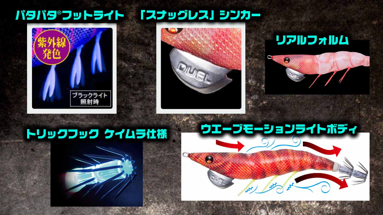 ダート性能の高さと、少し小さめな「パタパタフット」である「パタパタフットライト」を搭載し、トータルバランスの2017年の発売以来、人気を集めているエギが、デュエルの「イージーQダートマスター」。